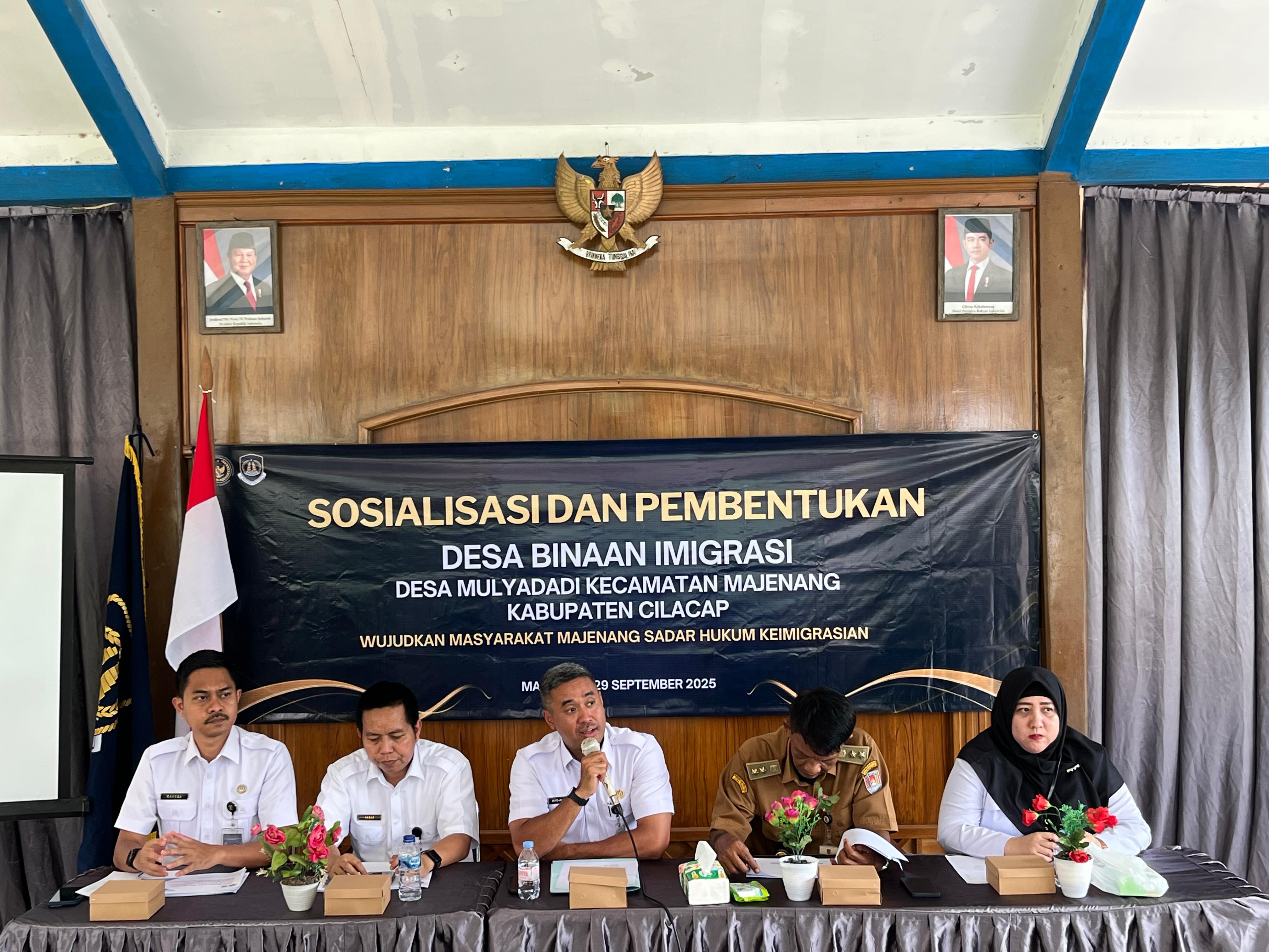 Kantor Imigrasi Cilacap menggelar kegiatan sosialisasi dan pembentukan Desa Binaan Imigrasi di Desa Mulyadadi, Kecamatan Majenang, Kabupaten Cilacap, pada Senin, 29 September 2025. Kegiatan ini bertujuan untuk meningkatkan pemahaman masyarakat mengenai fungsi dan peran keimigrasian, serta mengajak partisipasi aktif dalam pengawasan orang asing.