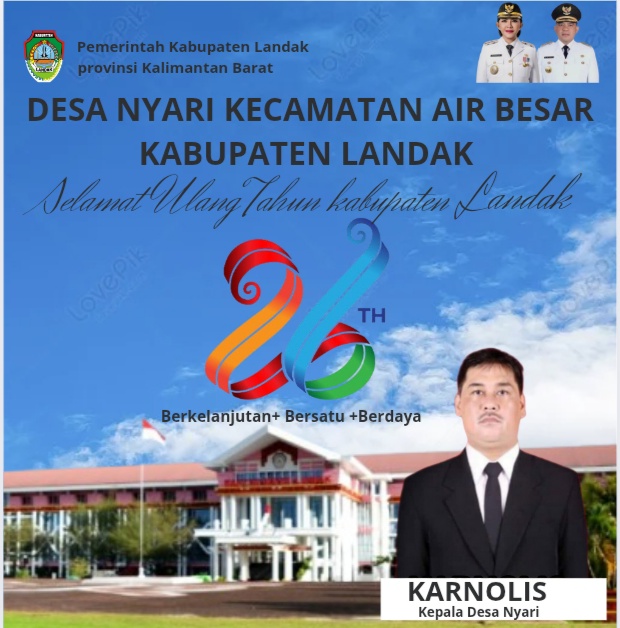 Dalam rangka memperingati Hari Ulang Tahun ke-26 Pemerintah Kabupaten Landak, Sungut, Kepala Koordinator Kalimantan Barat Media TRIBUN TIPIKOR, menyampaikan ucapan selamat dan apresiasi yang mendalam kepada Pemerintah Kabupaten Landak atas perjalanan panjang dalam membangun daerah dan melayani masyarakat.