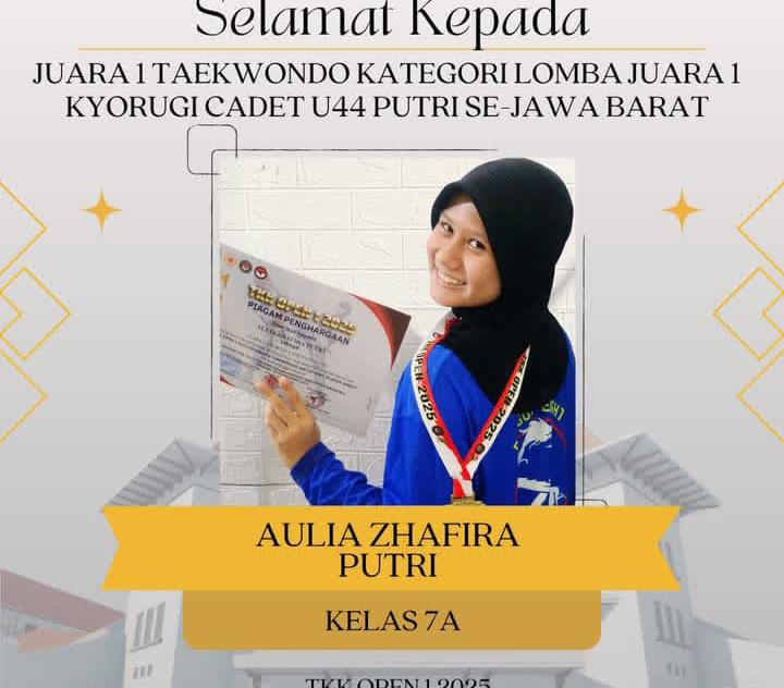 Banyak siswa siswinya berprestasi dengan bukti nyata siswi AULIA ZHAFIRA PUTRI kelas 7A prestasi ,semoga prestasi nya membawa harum institusi sekolah dimana siswi tersebut belajar .