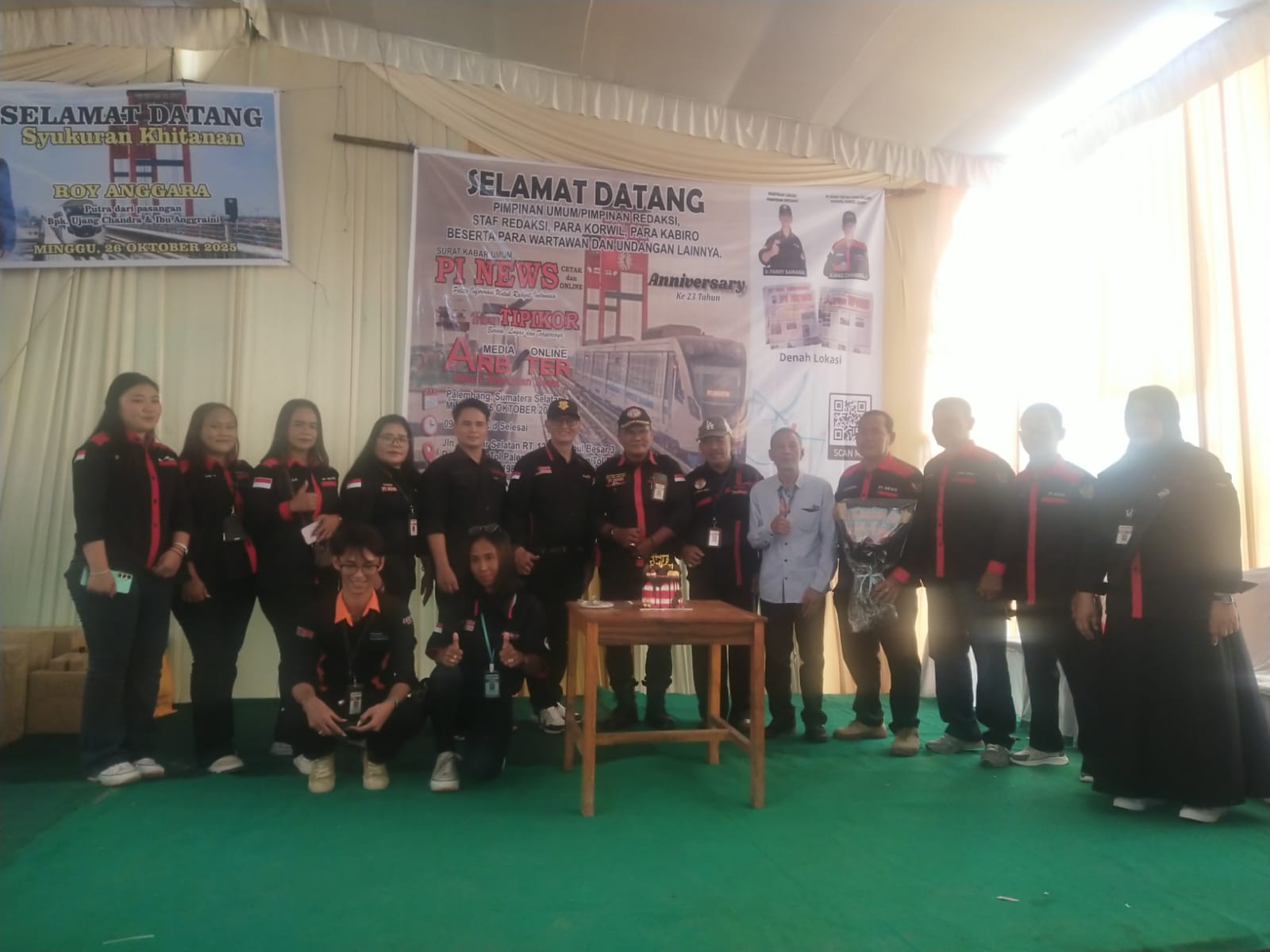 Gebyar HUT Media PI News, Tribun Tipikor dan Arbiter yang ke 23 tahun kali ini dilaksanakan di Palembang Sumatera Selatan, tanggal 26 Oktober 2025. Turut hadir di Acara tersebut, pejabat-pejabat dari Unsur Polri, TNI, Pemda, anggota DPRD, seluruh biro dan Korwil dari 4 pulau yaitu : pulau sumatera ( dari Sumatera Utara bapak Sugito dan teamnya, dari Dumai Riau, bapak Amir Hamzah dan Ibu Rosa beserta teamnya), pulau Jawa, pulau Kalimantan (Bapak Andres dan Bapak Sungut) dan Pulau Sulawesi (bapak Muklis) dan tamu undangan lainnya. Acara juga bersamaan dengan syukuran syunatan Roy Anggara (putra dari bapak Ujang Chandra dan Ibu Anggraini).