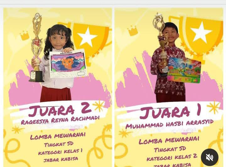 Juara 1 Muhammad Hasbi Ar-Rasyid lomba mewarnai tingkat sd kategori kelas 2 Jabar kabisa.