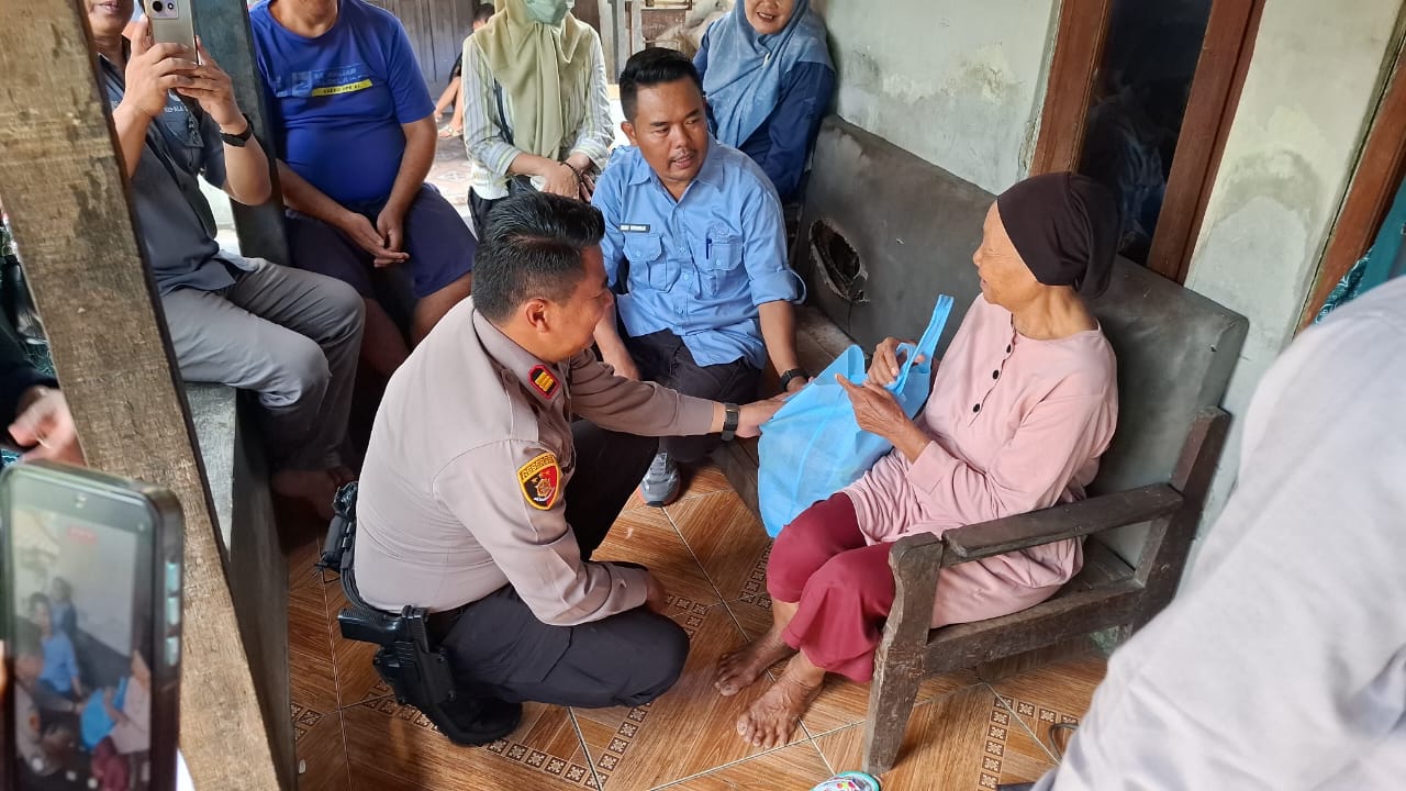 Kapolsek Jatiwangi Polres Majalengka AKP Rudy Djunardi bersama Forkopincam Jatiwangi memberikan bantuan ke warga Lansia di Desa Ciborelang dan Desa Cicadas Kecamatan Jatiwangi Kabupaten Majalengka, Selasa (2/12/2025).
