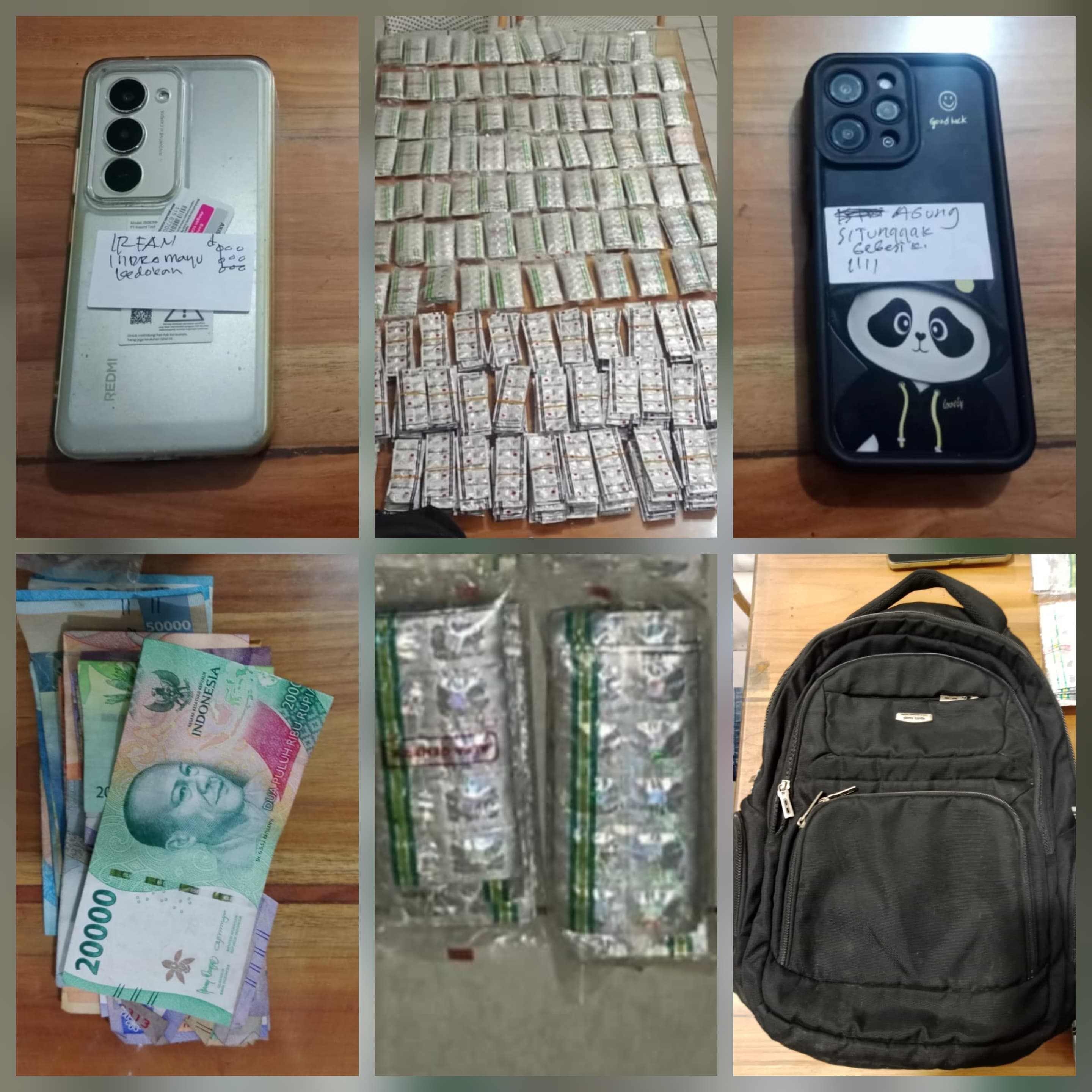 Kapolresta Cirebon, Kombes Pol Sumarni, S.I.K, S.H, M.H, mengatakan, sejumlah barang bukti juga turut diamankan dari tangan AA dan DR. Diantaranya, 6.450 butir Trihex, 8.300 butir Tramadol, uang tunai Rp 575 ribu yang diduga hasil penjualan OKT, handphone, tas, dan lainnya.