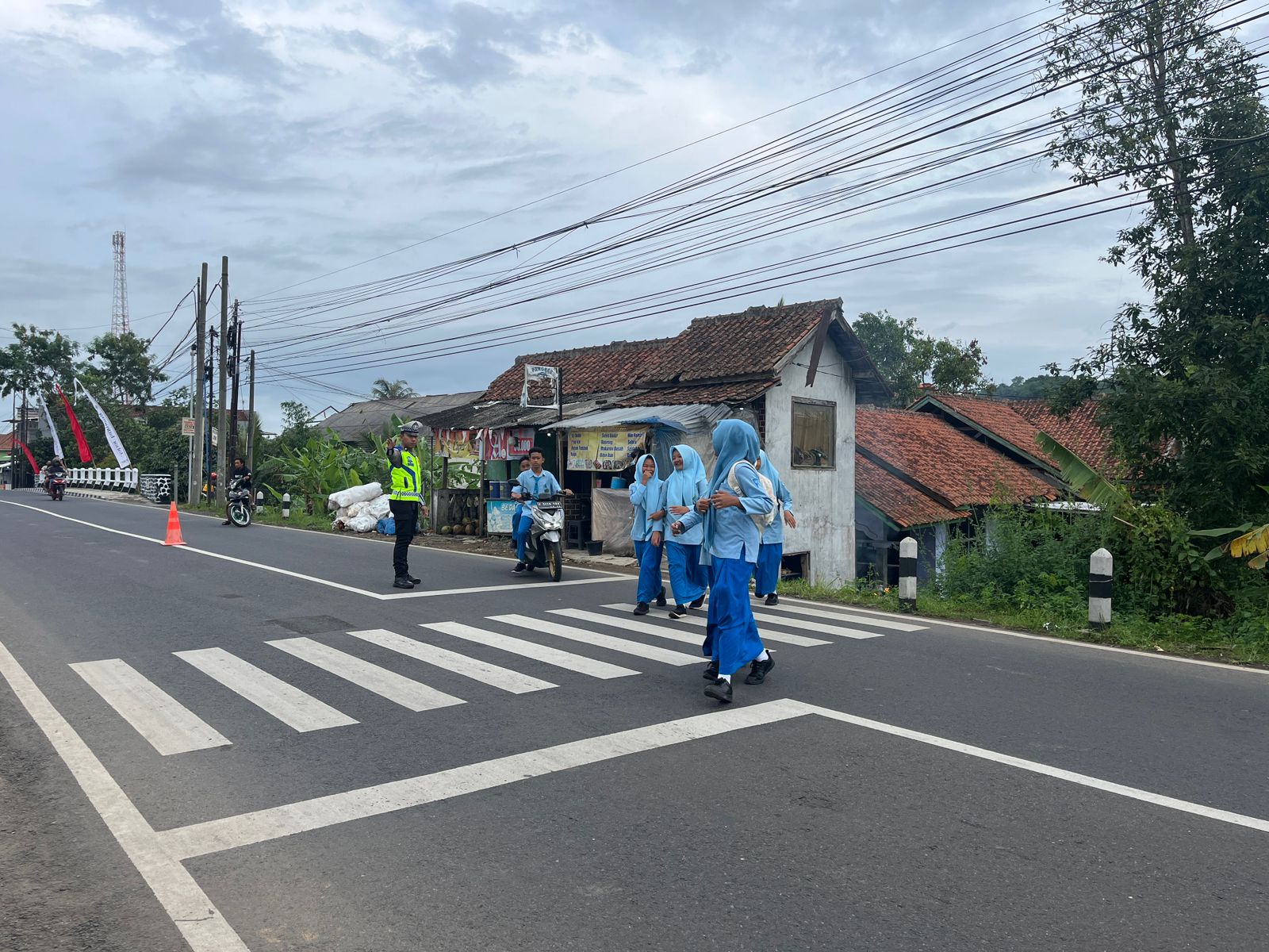 Polsek Cikijing Polres Majalengka Polda Jabar terus berupaya memastikan kelancaran arus lalu lintas serta meningkatkan keamanan dan keselamatan pengguna jalan. Ps. Panit Lantas Aiptu Ade Deni H bersama Bripda Thoriq melaksanakan Protap Pelayanan Gatur Lalin di Jalan Raya Cikijing-Talaga tepatnya di MTs PUI Kasturi, Kecamatan Cikijing, Selasa (09/12/2025).