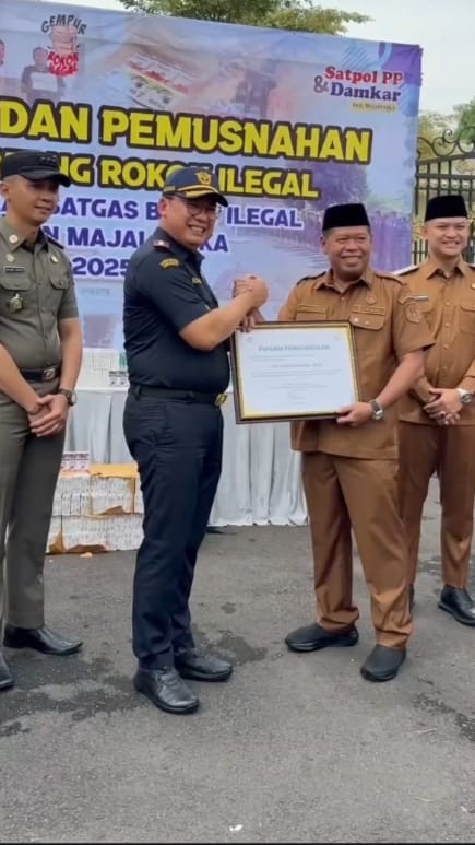 Pemerintah Kabupaten Majalengka menunjukkan komitmennya dalam menindak peredaran rokok ilegal dengan memusnahkan sebanyak 2.608.220 batang rokok hasil razia. Kegiatan ini dilaksanakan di halaman Pendopo Majalengka, Senin (8 Desember 2025), bekerja sama dengan Satuan Polisi Pamong Praja dan Bea Cukai Cirebon.