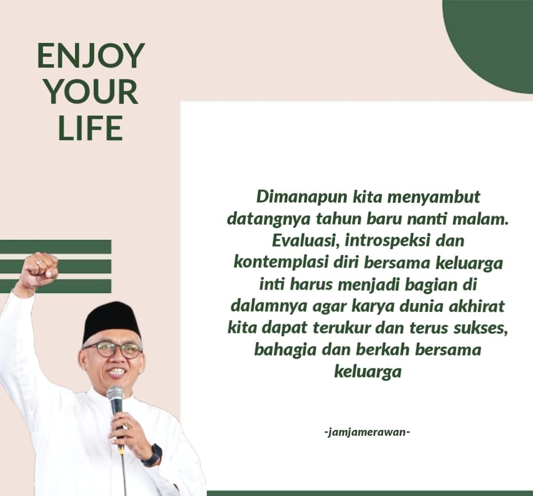 Mau dimanapun kita menikmati saat pergantian malam tahun baru nanti, akan lebih bermanfaat dan bermakna jika diisi dengan kumpul dan liburan keluarga, serta diisi pula dengan renungan perjalanan hidup keluarga. Karena kita perlu mengevaluasi tentang tauhidnya keluarga kita, tentang ibadahnya keluarga kita, tentang bacaan Qurannya keluarga kita, tentang karirnya kehidupan keluarga kita, tentang hubungan sosialnya keluarga kita dan tentu tentang akhlak perilakunya keluarga kita.