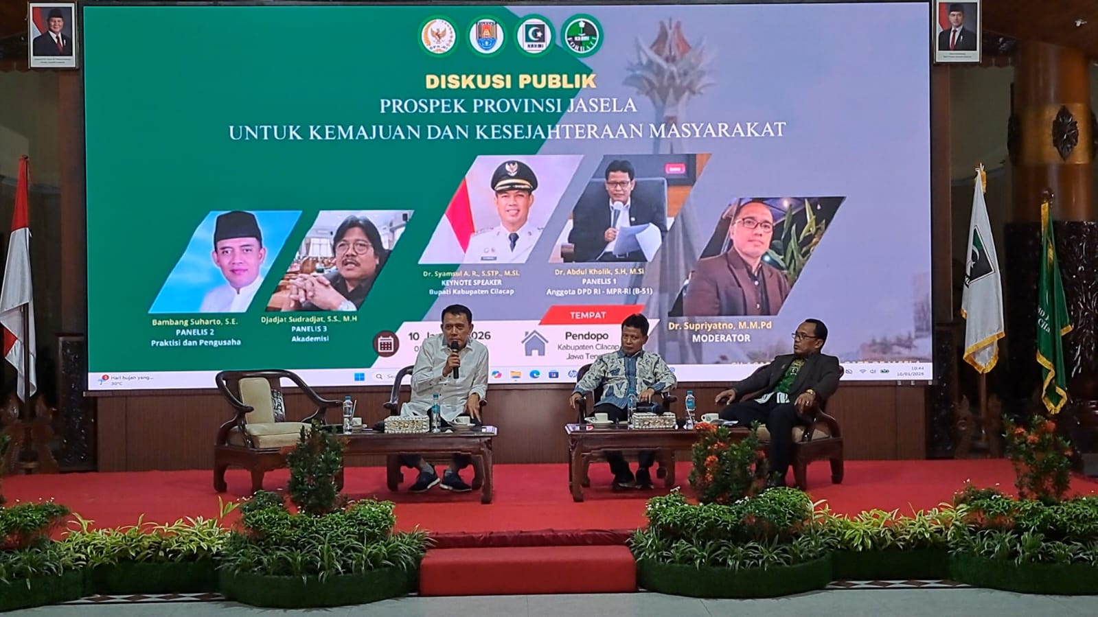 “Jadi kawasan Jasela ini mengintegrasikan 7 hingga 10 kabupaten yang bisa menjadi satu kekuatan ekonomi kalau ditumbuhkan bersama,” ujarnya usai kegiatan diskusi publik di Pendopo Wijayakusuma Cakti, Sabtu (10/1/2026).
