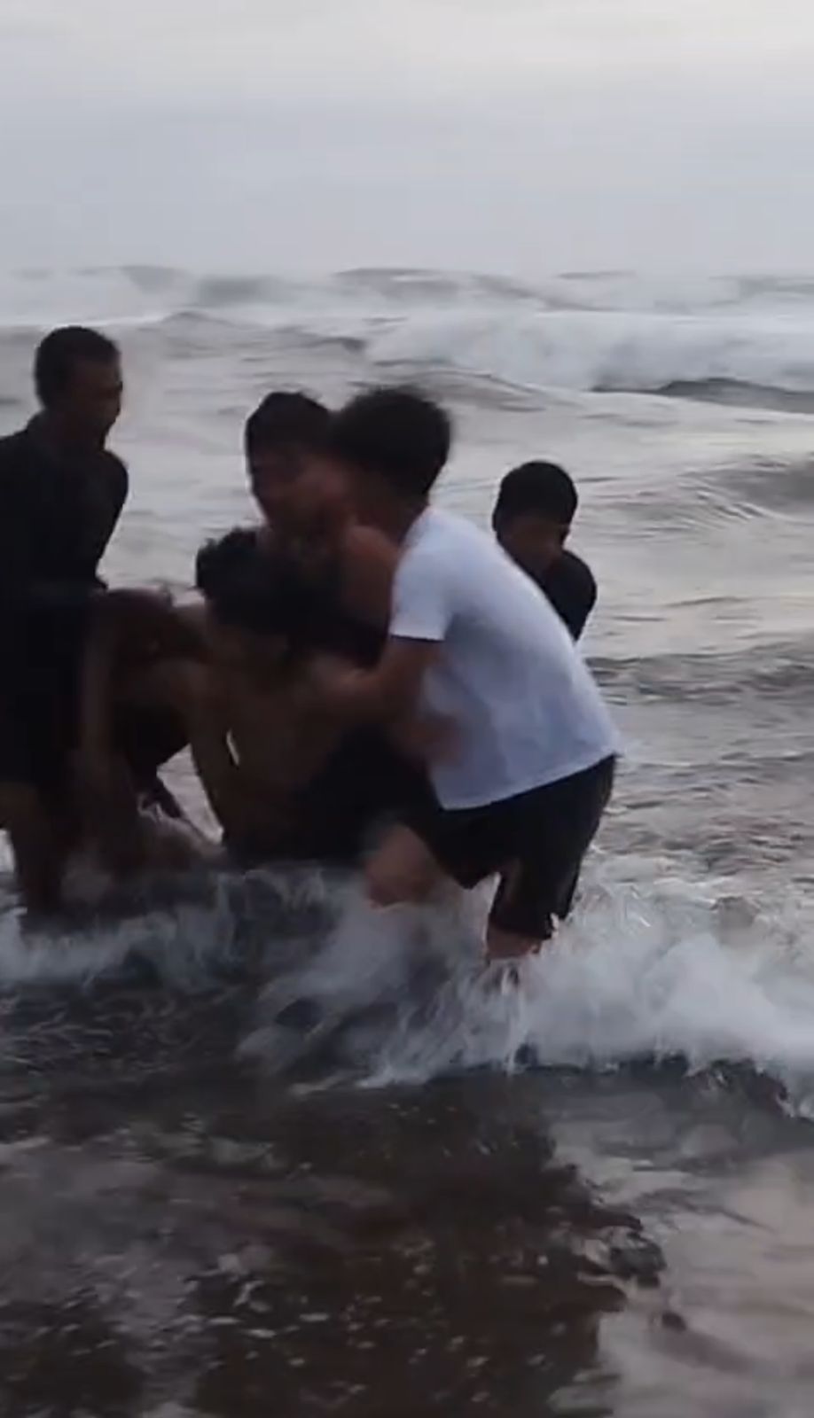 Proses penyelamatan berlangsung menegangkan. Arus laut yang kuat membuat tenaga terkuras, bahkan saat menggapai korban, kaki Briptu Bagus sudah tidak lagi menyentuh dasar pasir. Namun berkat tekad dan semangat kemanusiaan, ia berhasil menjangkau kedua korban dan membawa mereka kembali ke bibir pantai.