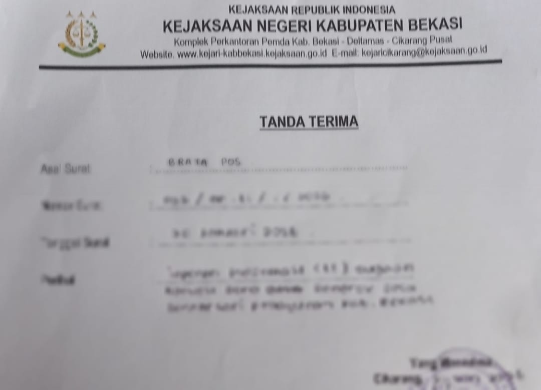 Datangnya surat laporan tersebut dari media brata pos cabang Kabupaten Bekasi. Dengan data dan fakta dilapangan, sehingga laporan langsung ditujukan kepada Kejaksaan Negeri Kabupaten Bekasi.
