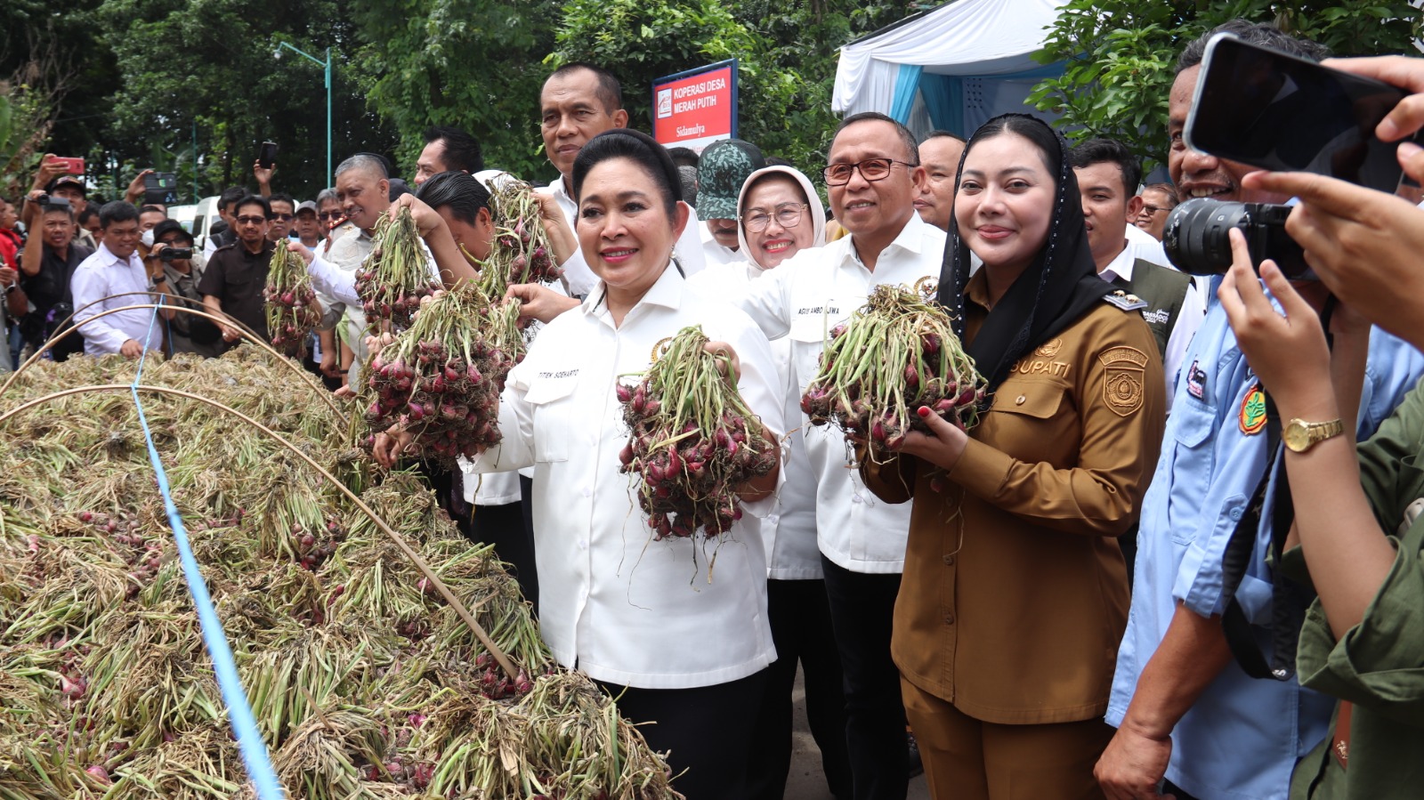 Ternyata bawang merah kita hasilnya sudah melimpah dan sudah bisa ekspor ke Vietnam, Thailand, Malaysia, dan Singapura. Alhamdulillah kita bisa ekspor. Tadi petaninya bilang bahwa modalnya Rp40 juta per hektare, hasilnya bisa mencapai Rp350 juta. Jadi untungnya besar sekali,” ujar Titiek.