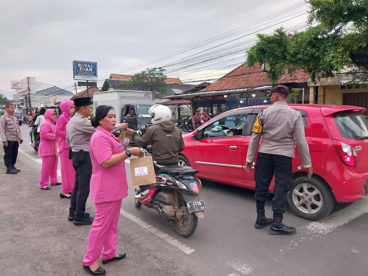 Dalam rangka menyemarakkan Bulan Suci Ramadhan 1447 H / 2026 M, jajaran Polsek Jatiwangi bersama Bhayangkari melaksanakan kegiatan bagi-bagi takjil kepada masyarakat yang melintas di depan Mako Polsek Jatiwangi, Jalan Raya Cirebon–Bandung, Kecamatan Jatiwangi, Kabupaten Majalengka, pada Selasa (03/03/2026) pukul 17.00 WIB.