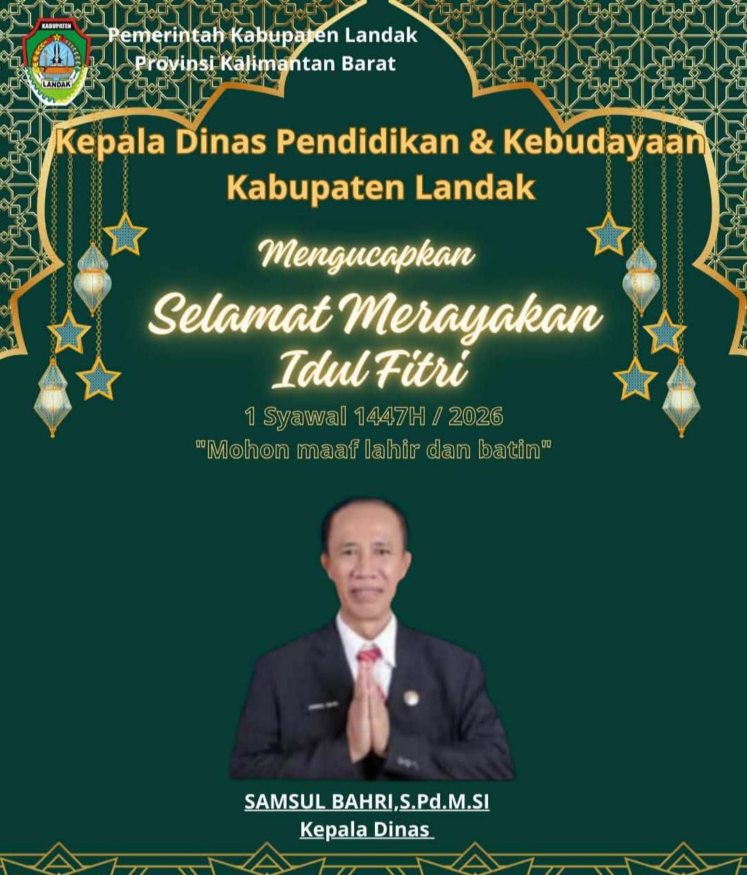 Dalam suasana penuh kebahagiaan menyambut Hari Raya Idul Fitri 1 Syawal 1447 Hijriah tahun 2026, Kepala Dinas Pendidikan dan Kebudayaan Kabupaten Landak, Samsul Bahri, menyampaikan ucapan selamat kepada seluruh umat muslim yang merayakan.