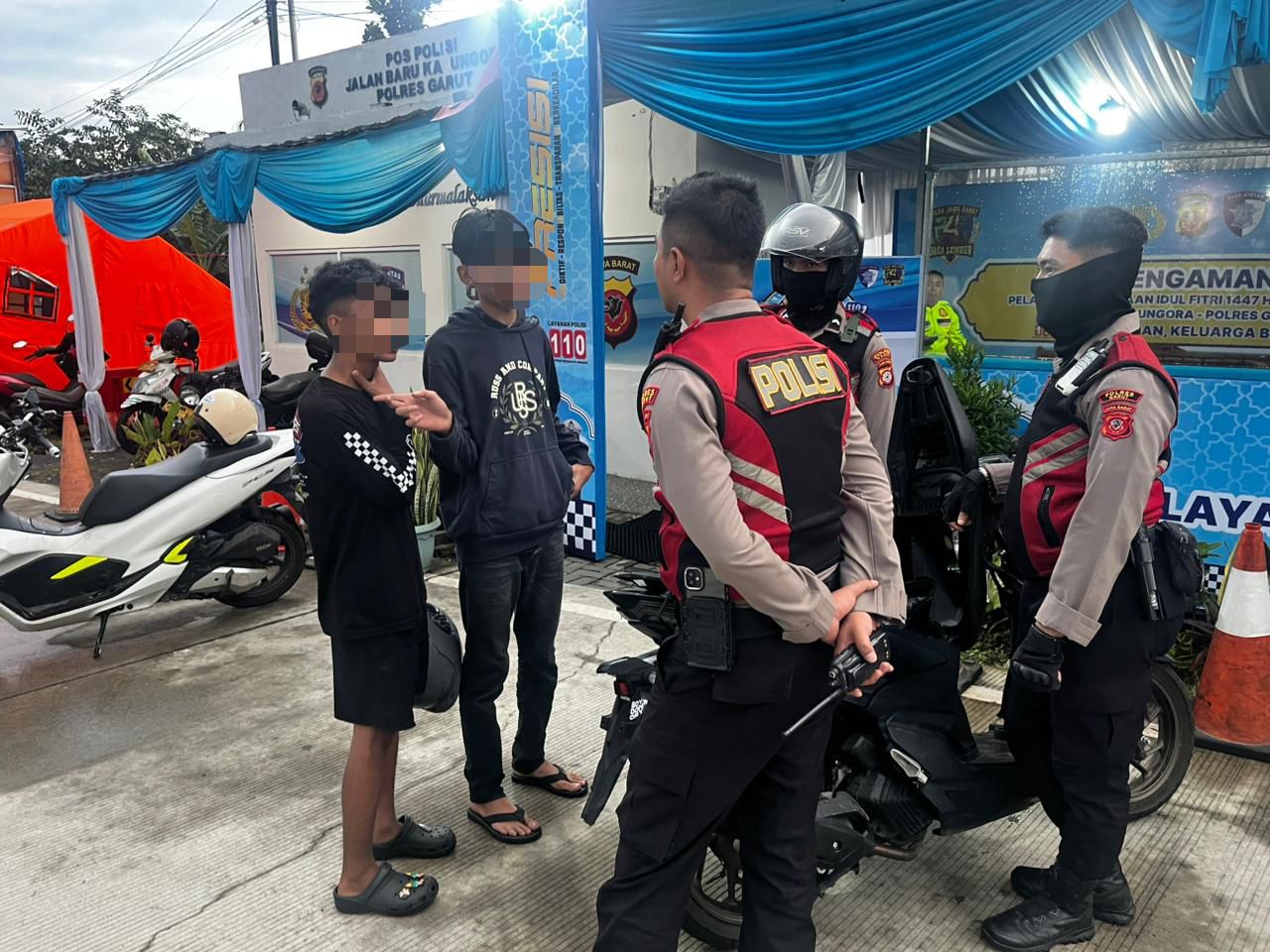 Petugas kemudian segera menghentikan dan mengamankan kedua pemuda tersebut untuk mencegah terjadinya kecelakaan maupun gangguan kamtibmas di lokasi.