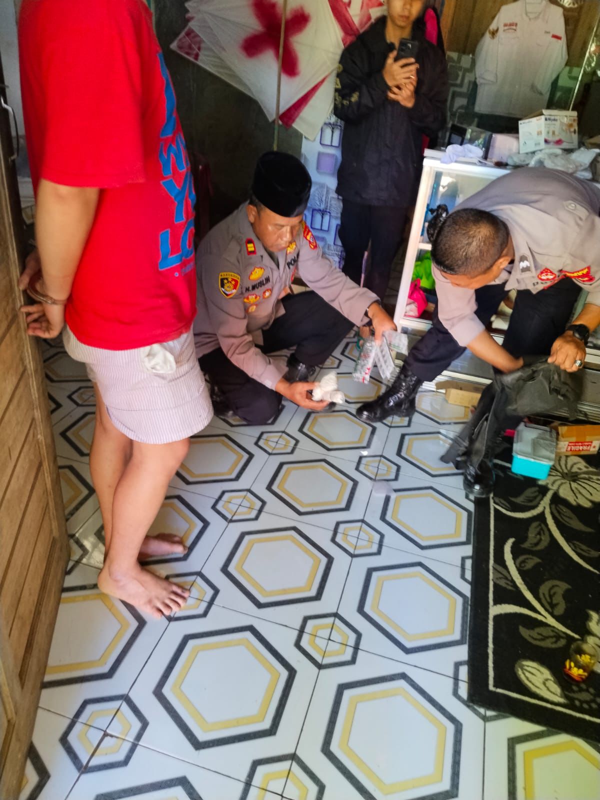 Dari hasil pengembangan di lokasi, petugas tidak hanya mengamankan pelaku, namun juga menemukan sejumlah barang bukti yang mengarah pada dugaan penyalahgunaan obat-obatan terlarang dan minuman keras.