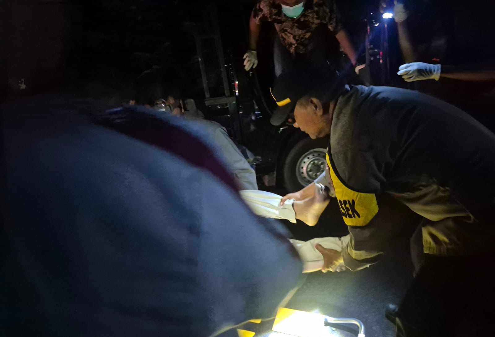 Polsek Cikelet melakukan evakuasi terhadap seorang pria yang ditemukan meninggal dunia di dalam kendaraan yang terparkir di pinggir jalan lintas provinsi, tepatnya di Kampung Cimangke, Desa Cijambe, Kecamatan Cikelet, Kabupaten Garut, Jumat malam (27/3/2026).