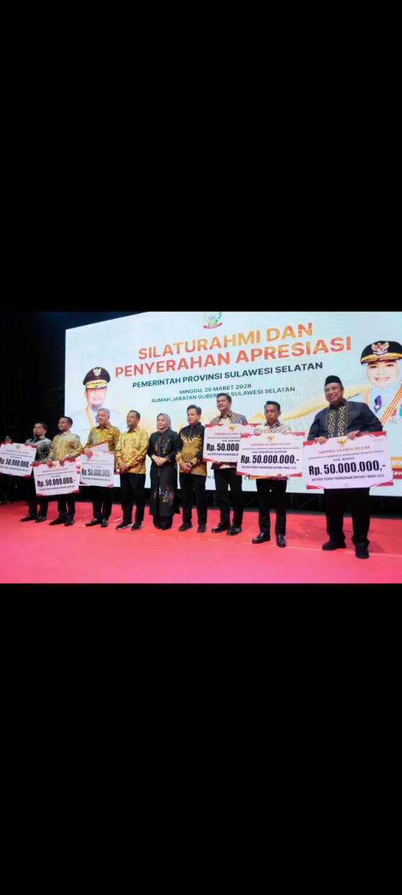 Bupati Bantaeng, M. Fathul Fauzy Nurdin menerima secara langsung apresiasi sebagai salah satu Kabupaten Berprestasi berdasarkan Indikator Makro sebesar Rp.50 juta pada kategori peraih Penghargaan Adipura Tahun 2025. Penyerahan diserahkan oleh Gubernur Sulawesi Selatan, H. Andi Sudirman Sulaiman di Rumah Jabatan Gubernur Sulawesi Selatan, Minggu (29/3).