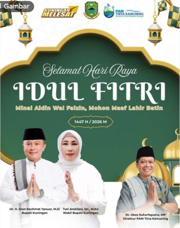 Dalam semangat menyambut Hari Raya Idul Fitri 1447 Hijriah/2026 Masehi, PAM Tirta Kamuning Kabupaten Kuningan menyampaikan ucapan selamat kepada seluruh masyarakat, sekaligus mengajak untuk menjadikan momentum suci ini sebagai ajang memperkuat kebersamaan dan meningkatkan kualitas pelayanan publik.
