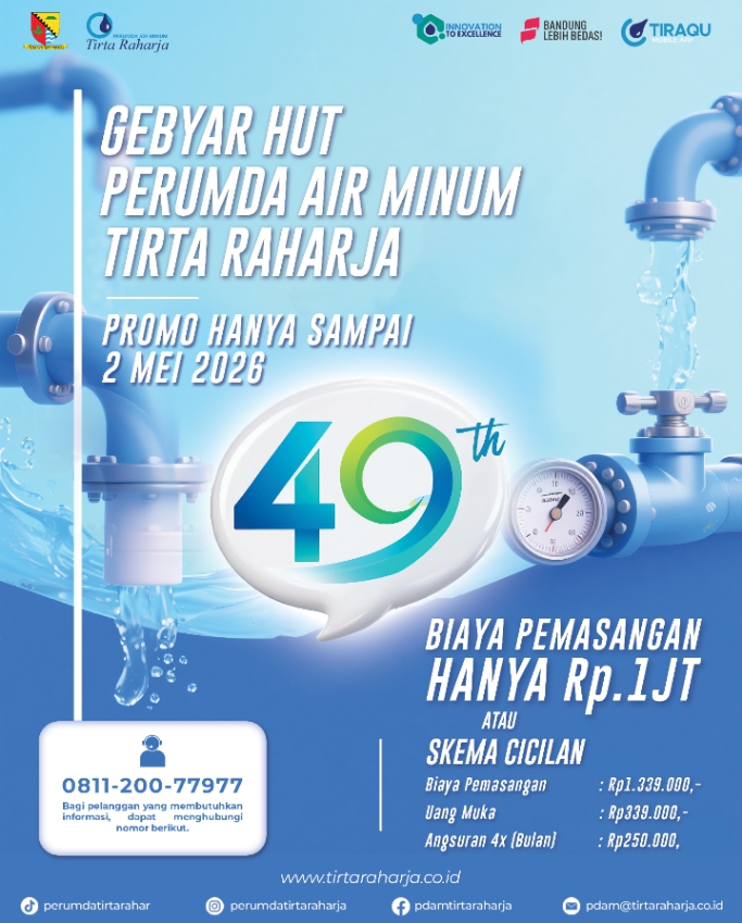 Kemudahan dalam biaya pemasangan tersebut dalam rangka Gebyar Hari Ulang Tahun (HUT) Perumda Air Minum Tirta Raharja yang ke 49 tahun.