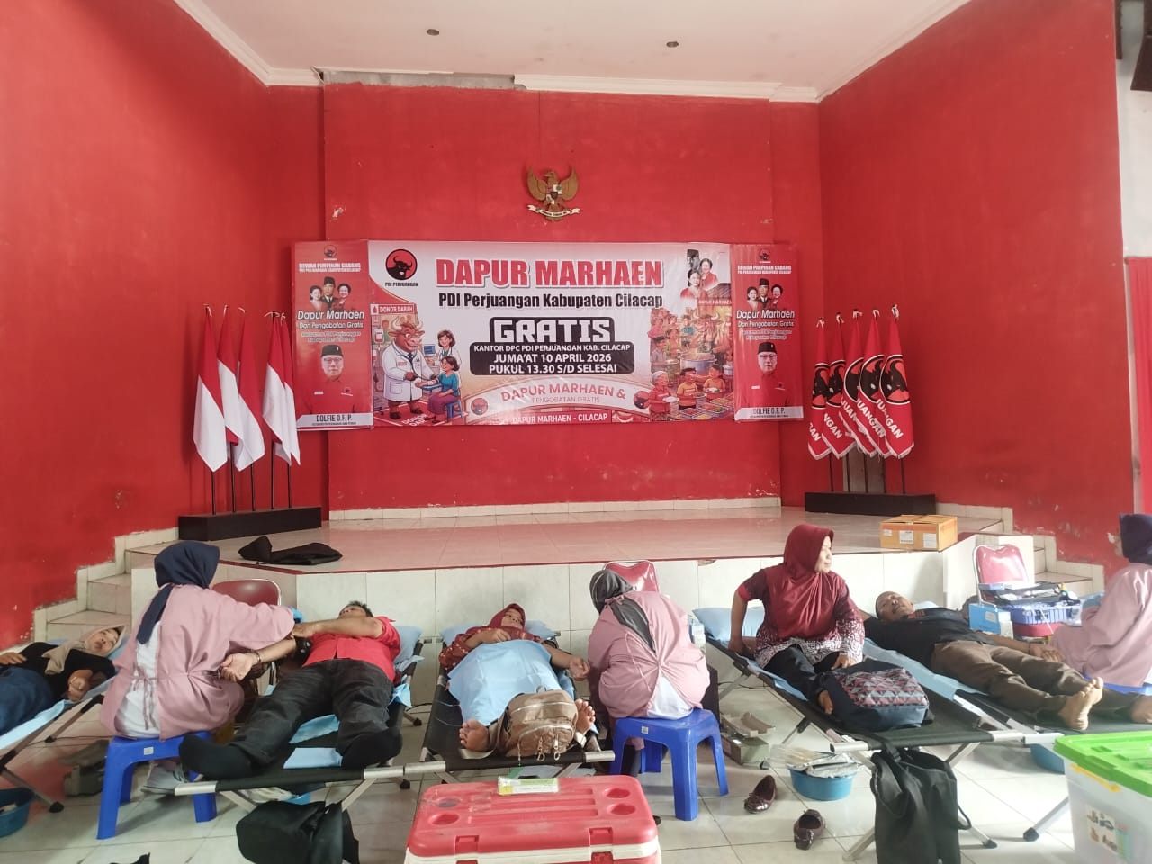 Dewan Pimpinan Cabang (DPC) PDI Perjuangan Kabupaten Cilacap menggelar aksi sosial berupa donor darah dan cek kesehatan gratis untuk masyarakat, bertempat di kantor DPC PDIP hari Jumat ( 10 / 04 / 2026 )