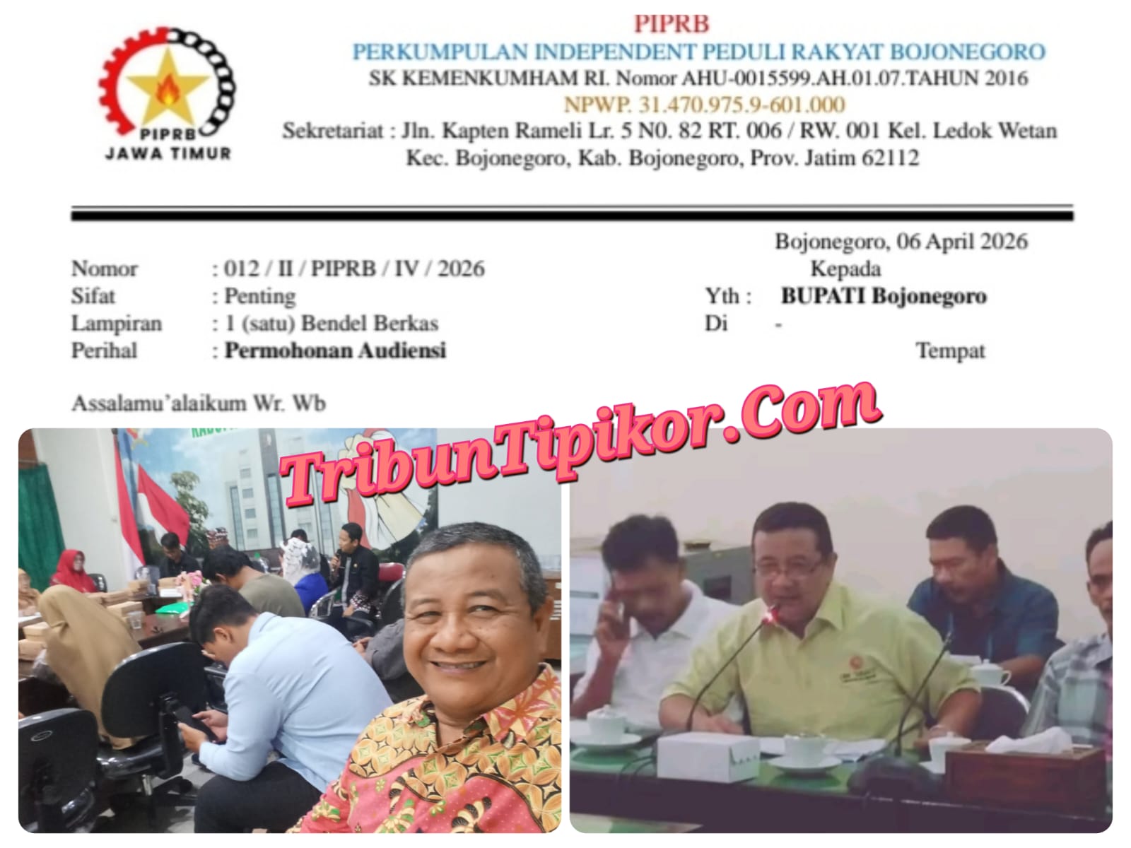Bojonegoro Jatim, tribuntipikor.com // Kali ini sejumlah kalangan, mulai dari aktivis hingga jurnalis media online dan wartawan televisi nasional, tengah menantikan kepastian jadwal audiensi antara Lembaga Swadaya Masyarakat Perkumpulan Independen Peduli Rakyat Bojonegoro (LSM PIPRB) dengan Bupati Bojonegoro, Setyo Wahono bersama jajaran terkaitnya.