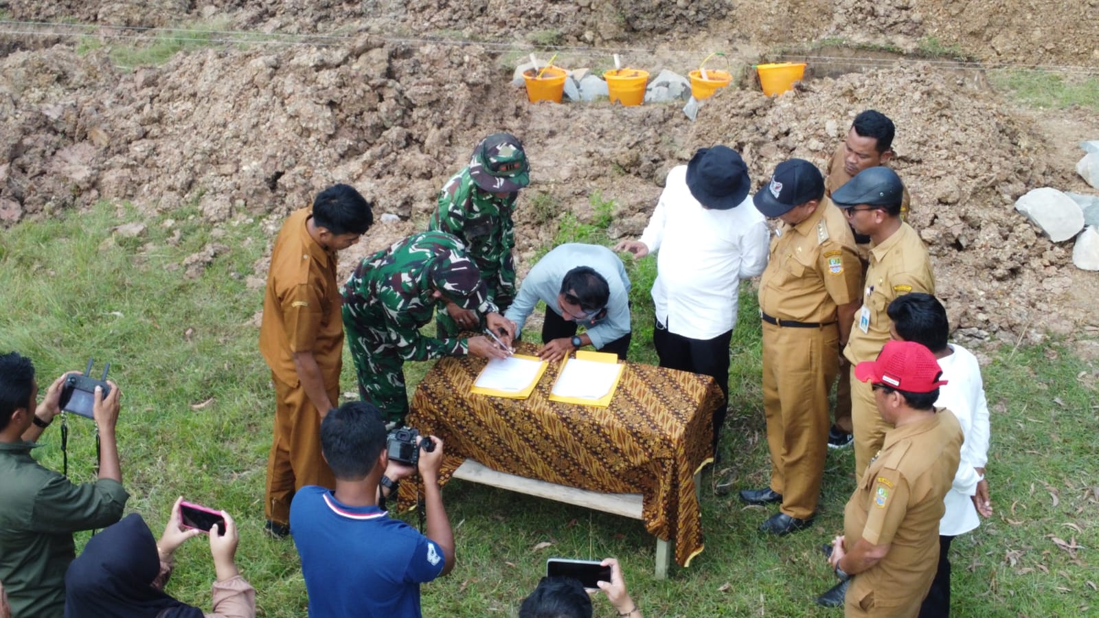 Puncak acara peletakan batu pertama dilakukan oleh Mayor Inf Sukoco
