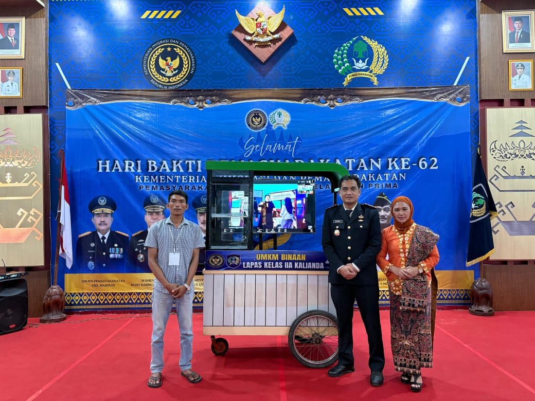 Dalam rangkaian kegiatan tersebut, Lapas Kalianda juga melaksanakan penyerahan bantuan gerobak usaha kepada keluarga Warga Binaan Pemasyarakatan (WBP) sebagai bentuk dukungan terhadap pemberdayaan ekonomi dan keberlanjutan kehidupan sosial keluarga WBP.