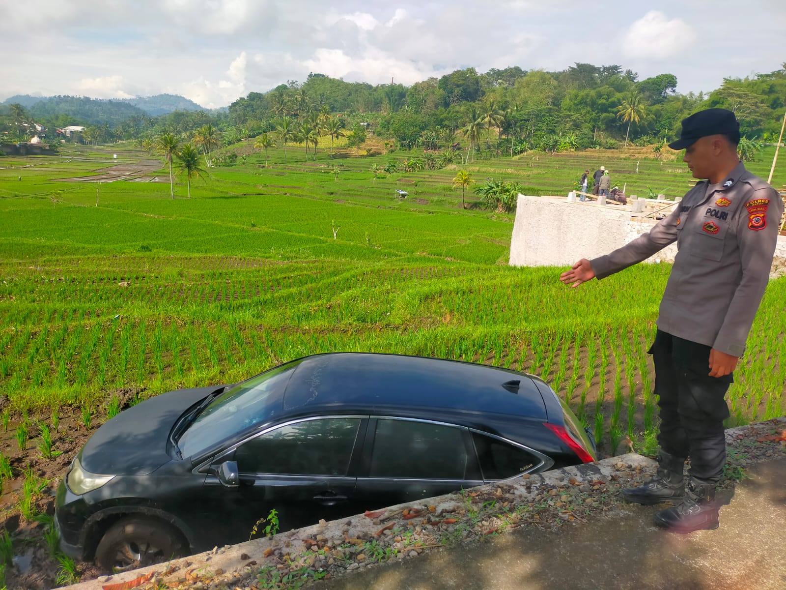 Polsek Leuwigoong Cek TKP Laka Lantas Tunggal, Kendaraan Honda CR-V Masuk Sawah