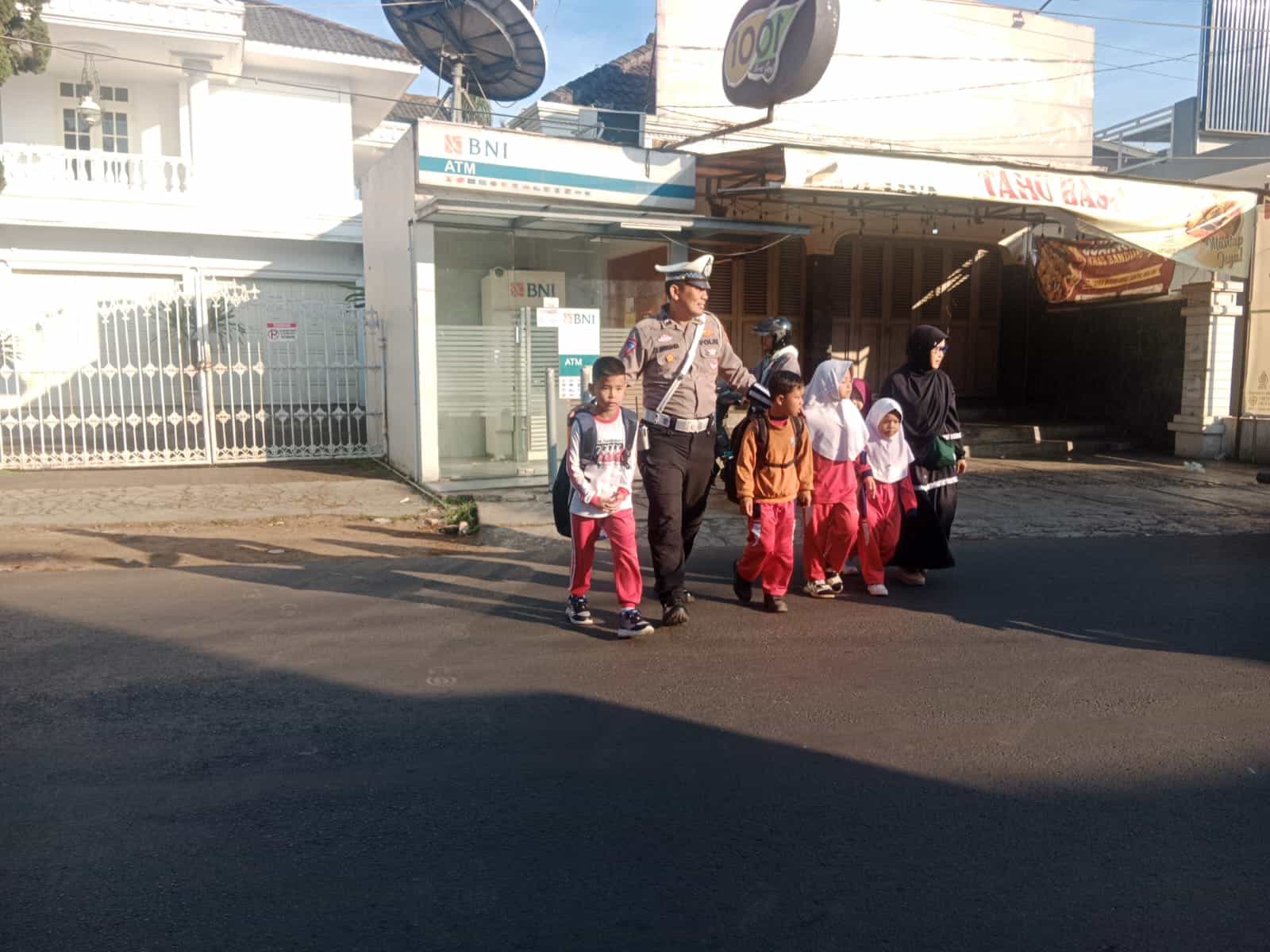 Polsek Samarang Laksanakan Gatur Pagi, Bantu Anak Sekolah Menyeberang Jalan dengan Aman