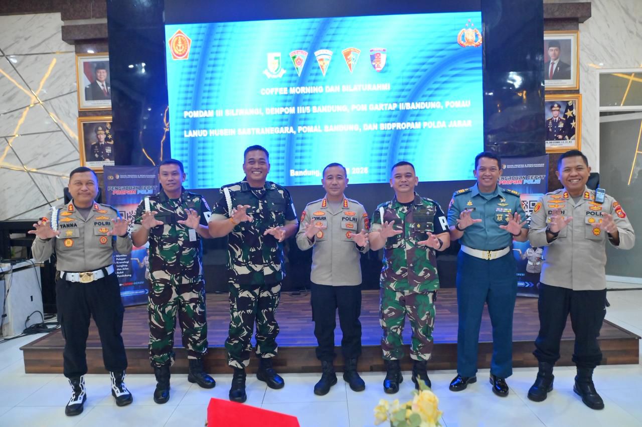 Perkuat Sinergitas TNI-Polri, Plt. Kapolrestabes Bandung Pimpin Coffee Morning Bersama POM TNI dan Bidpropam Polda Jabar