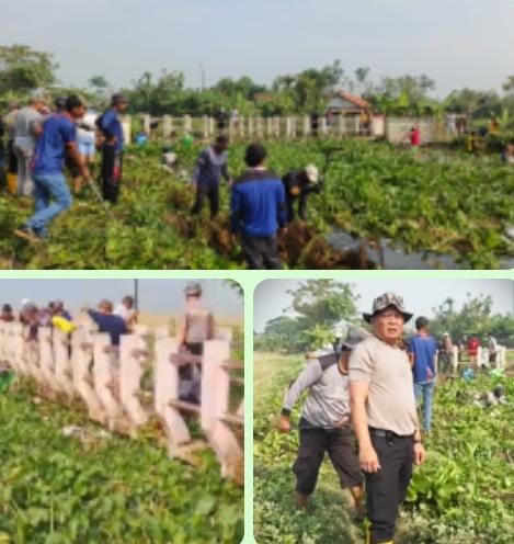 Luar Biasa! Kapolsek Pebayuran dan suverpisor PJT II pebayuran Pimpin Jumsih Bersihkan Eceng Gondok Di Irigasi Desa Kertajaya