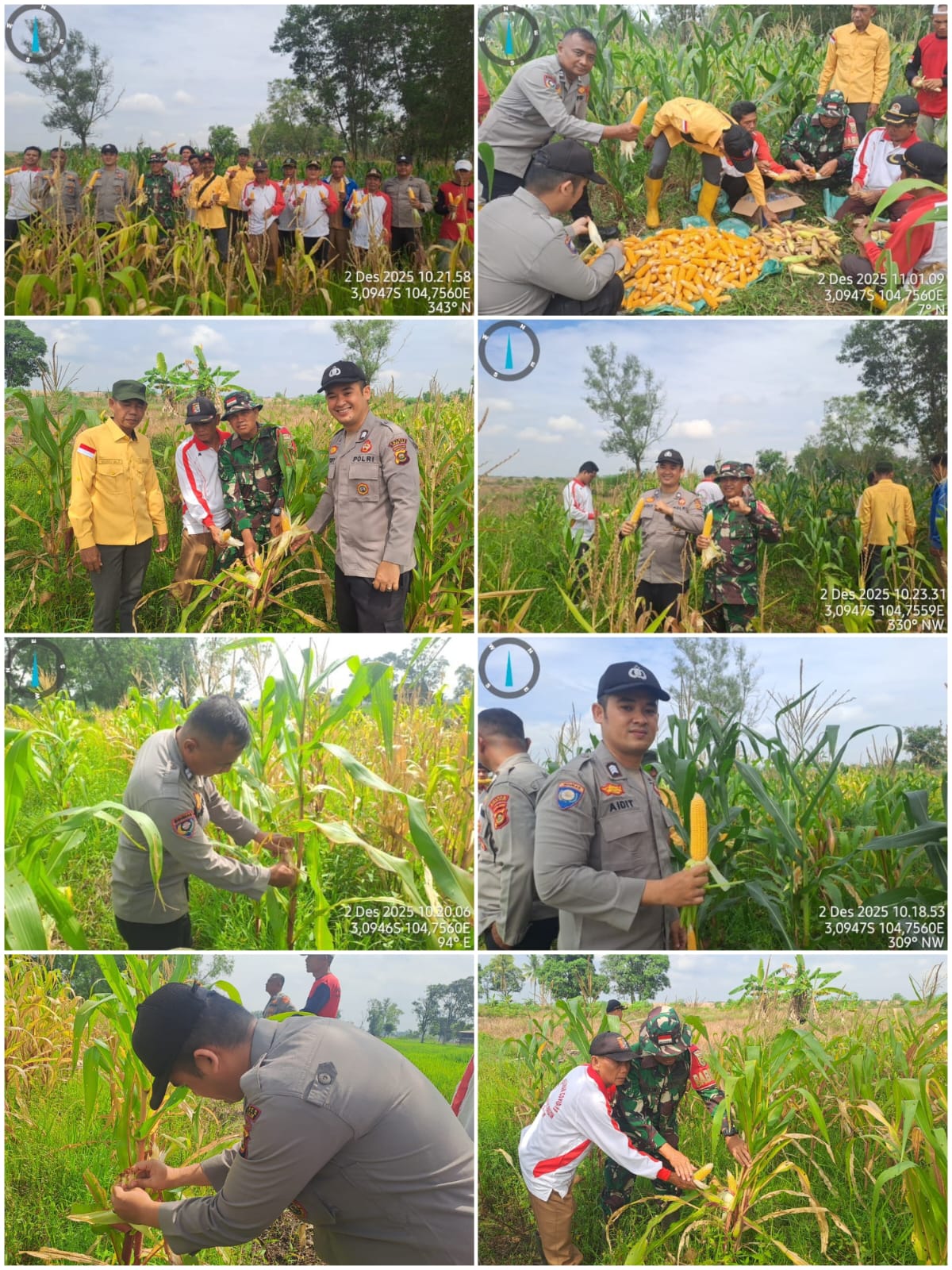 POLRES OGAN ILIR MELALUI POLSEK PEMULUTAN LAKSANAKAN PANEN JAGUNG PROGRAM KETAHANAN PANGAN DI DESA PELABUHAN DALAM